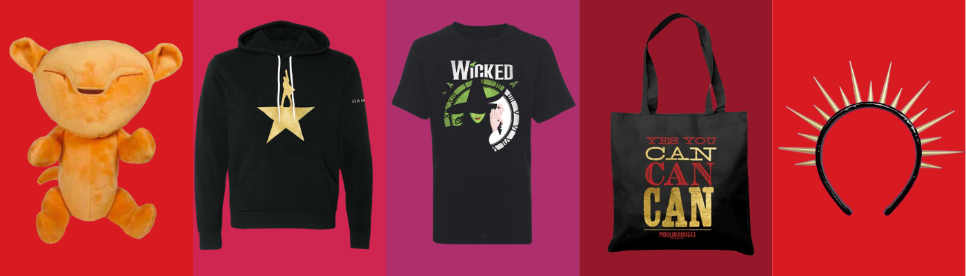 Shop select merch from Hamilton, The Lion King, Moulin Rouge! The Musical, Six, and Wicked!